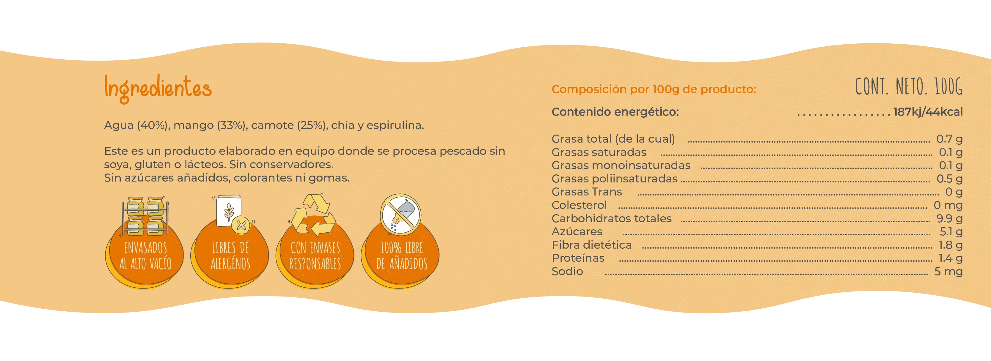 Sin gluten • Sin lácteos • Sin azúcar añadida • Sin conservadores