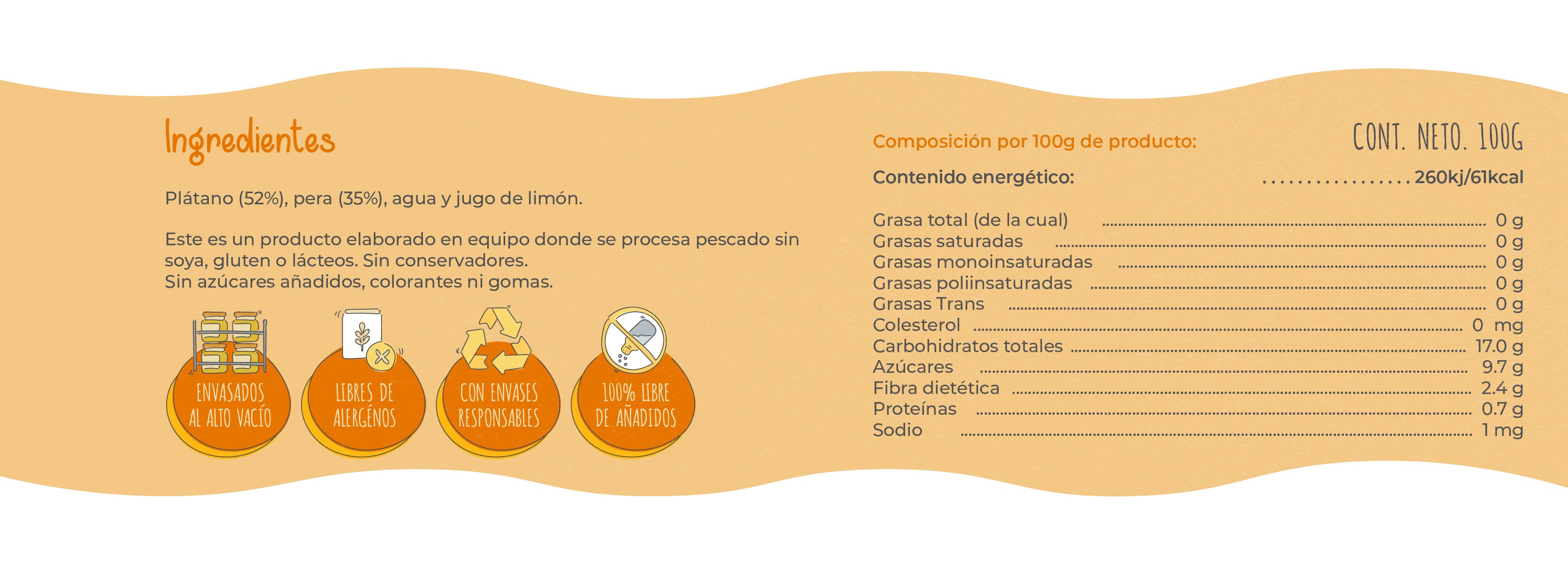 ¡Doble dosis de felicidad! La pera y el plátano contienen un aminoácido esencial llamado triptófano. Al ser asimilado por el cuerpo de tu bebé, se convierte en serotonina, ¡para que tu pequeño sea más feliz! El plátano combate la anemia por su alto contenido en hierro además de contener vitaminas A, C, E y algunas del grupo B, también tiene minerales como el potasio, magnesio y calcio.